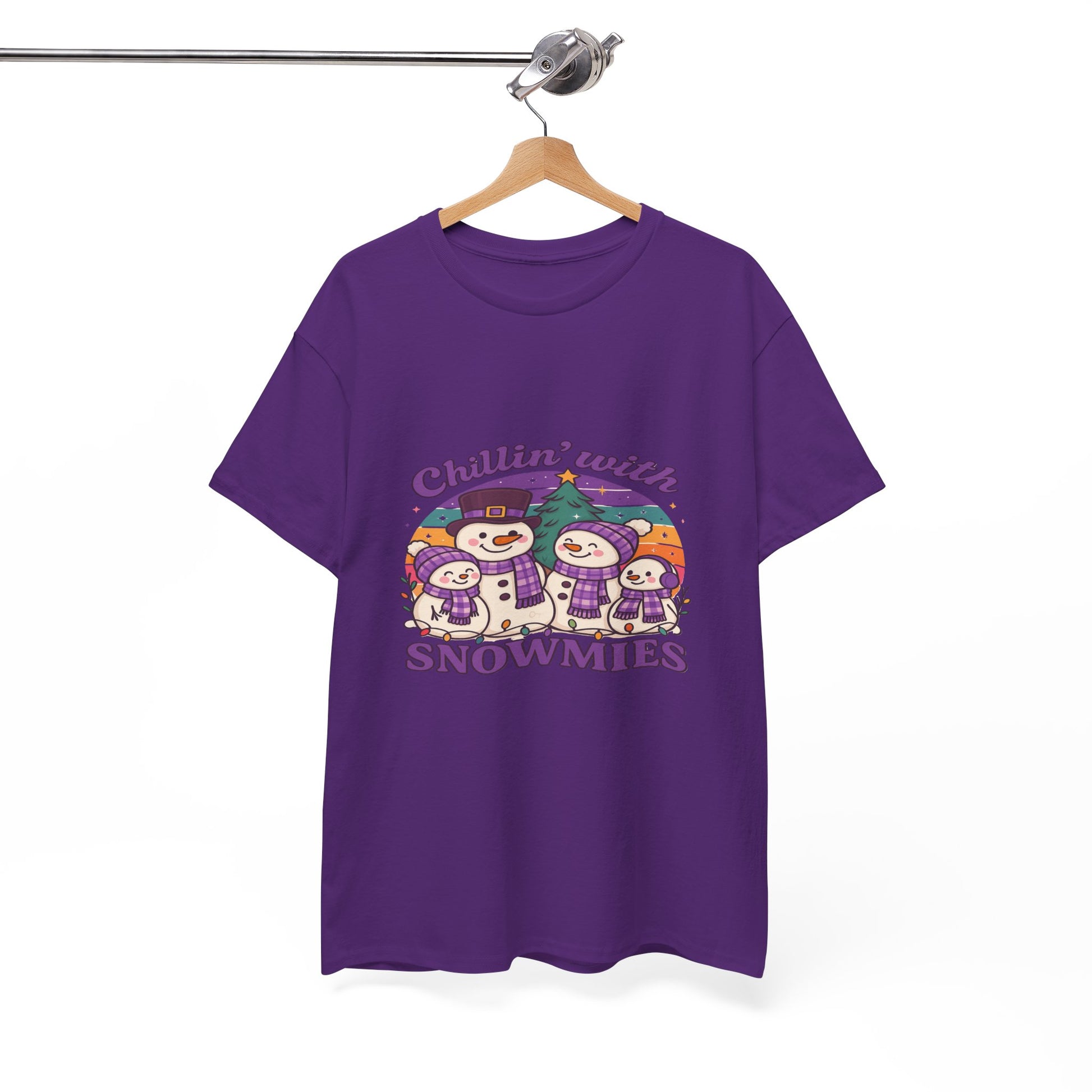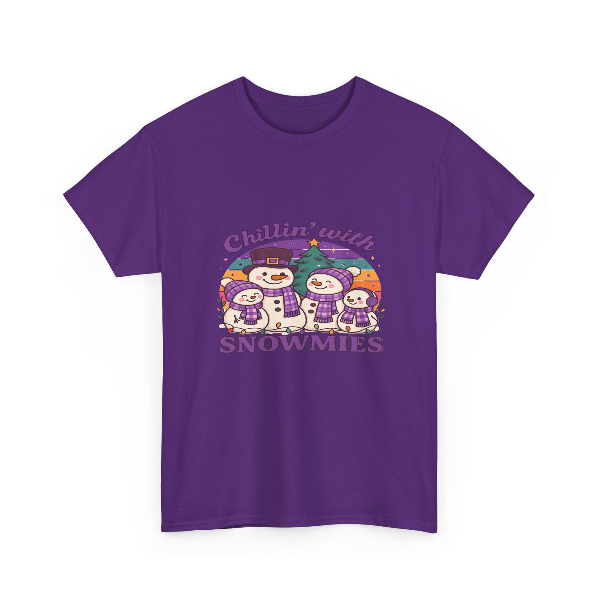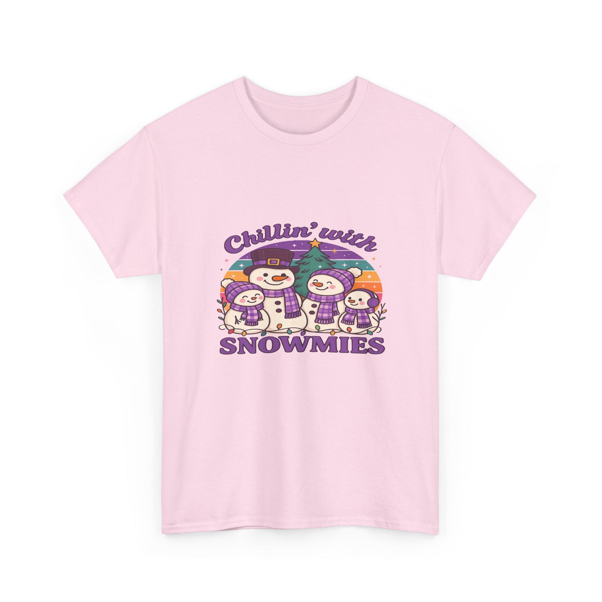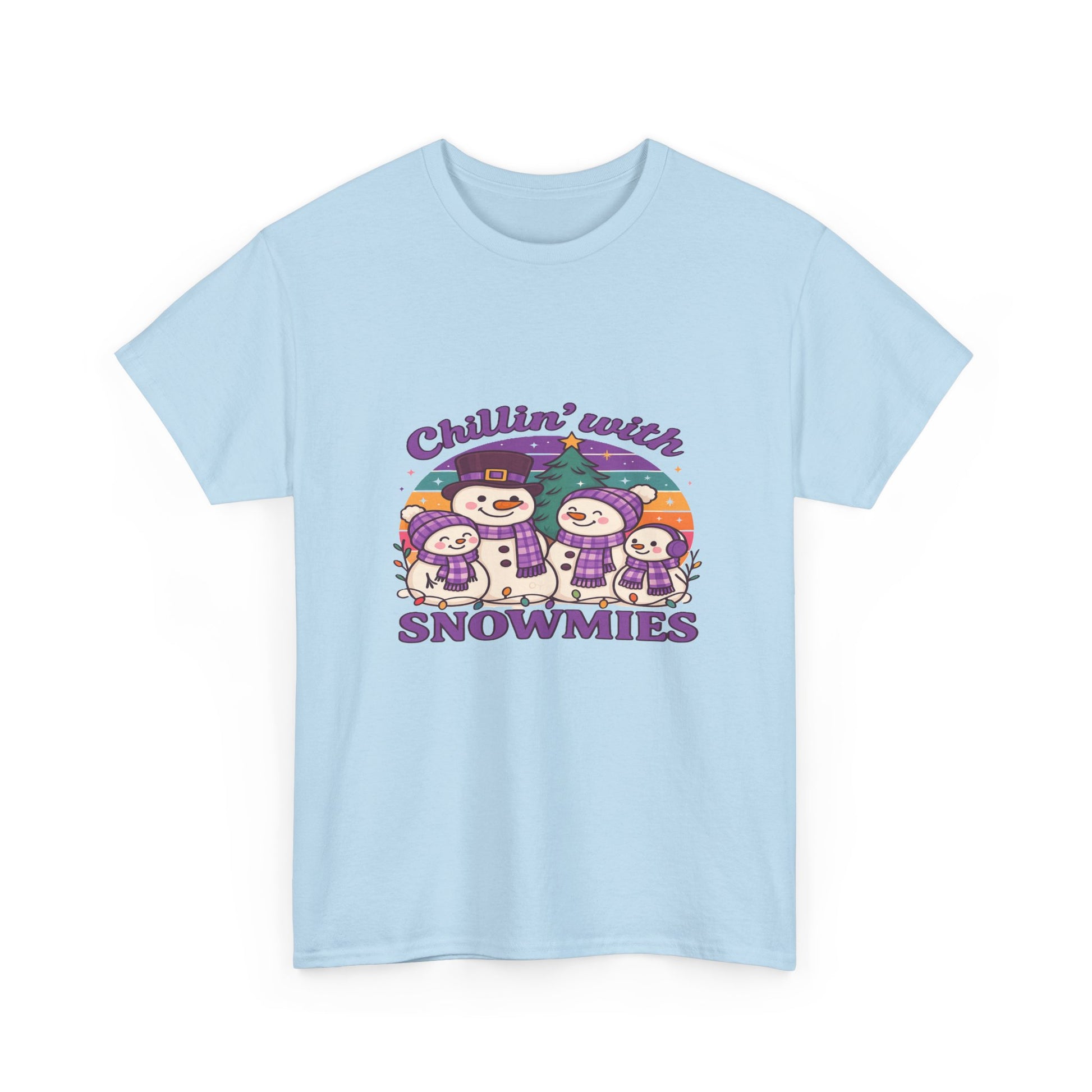 This unique tee featuring a cheerful retro snowman design with the phrase 'Chillin' with SNOWMIES' is perfect for adding a festive touch to your wardrobe. The classic fit and crew neckline make it versatile for any occasion, while the tear-away label ensures a comfortable wear. Suitable for adults, this T-Shirt is ideal for the holiday season and winter festivities.