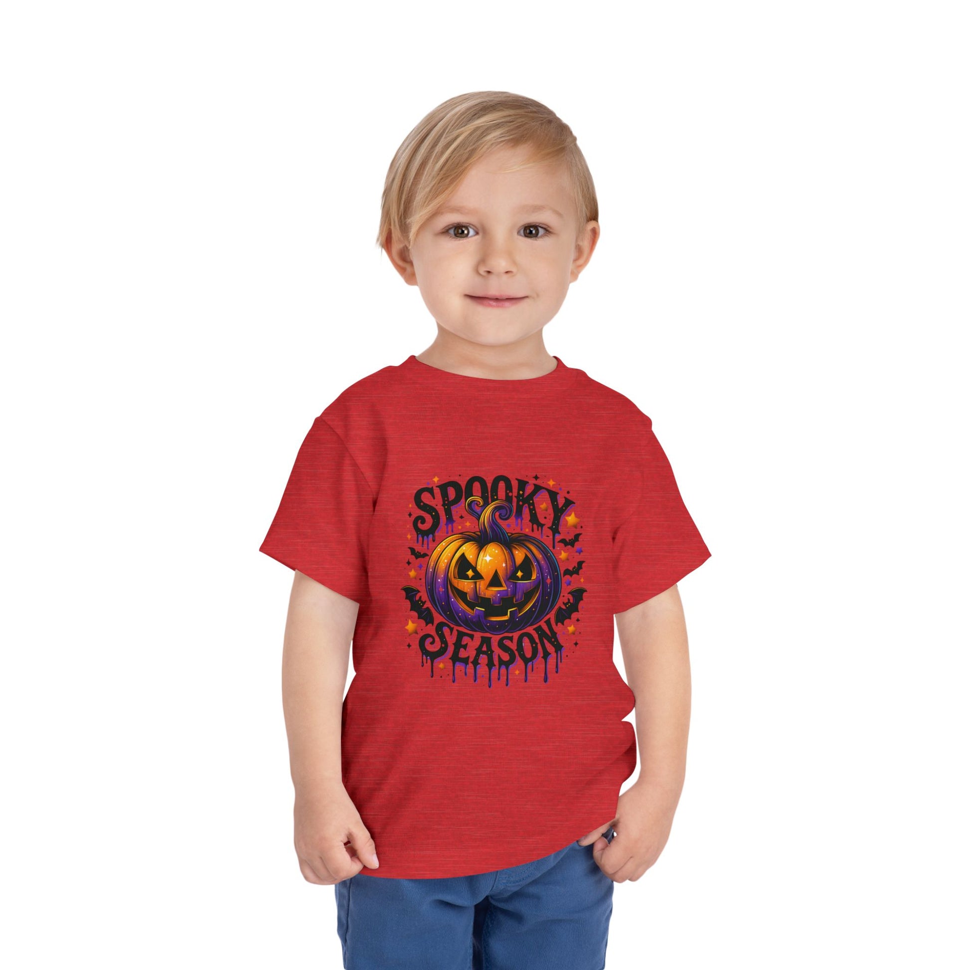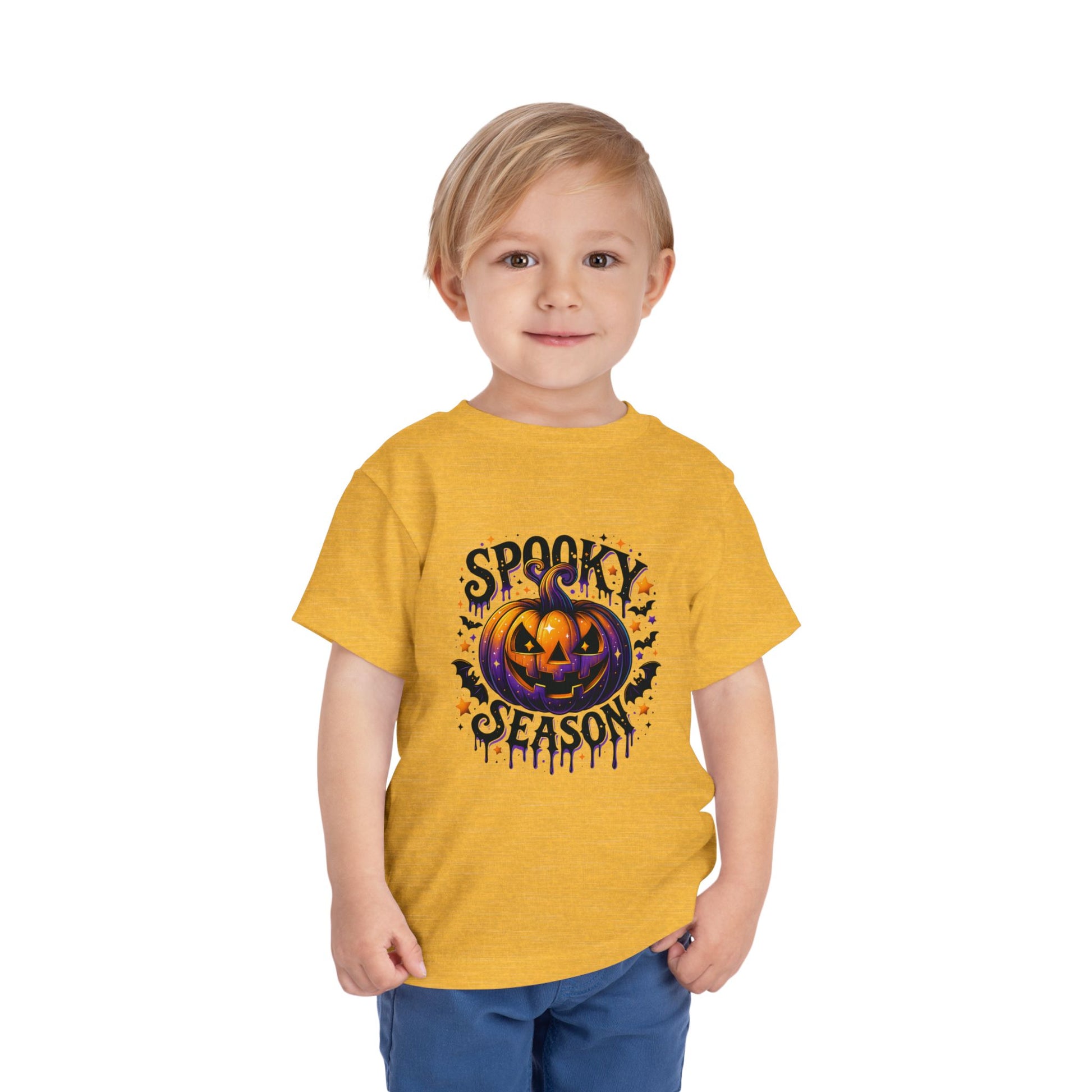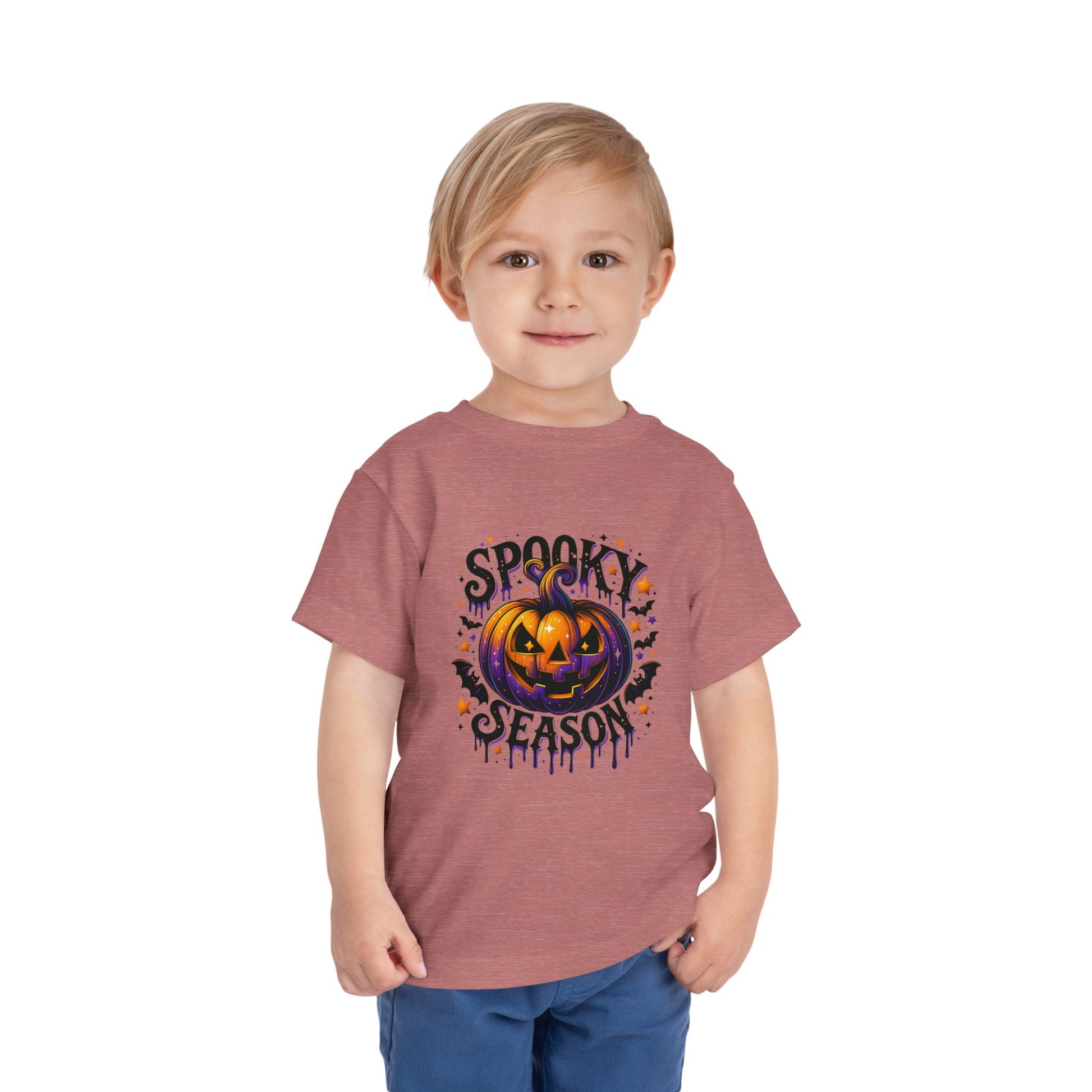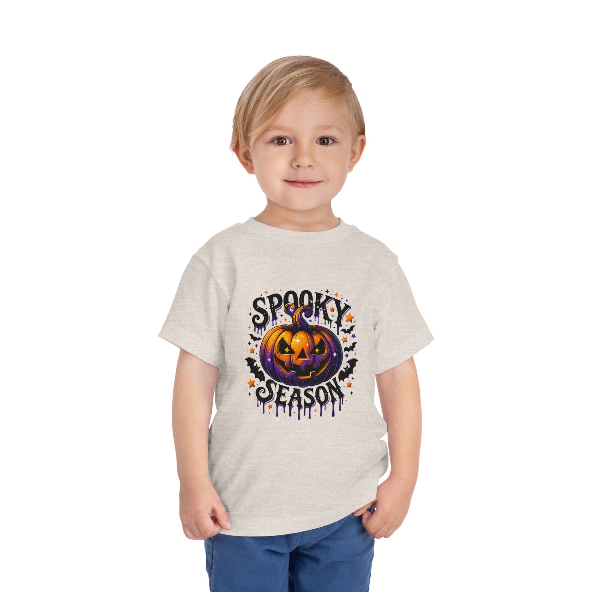 Get your little one ready for Halloween with this adorable "Spooky Season" tee! Featuring a grinning Jack-o'-Lantern, dripping text, and playful bats, this shirt is perfect for trick-or-treating or festive fun. Made from soft, comfortable fabric, it's the ideal holiday outfit for your toddler.