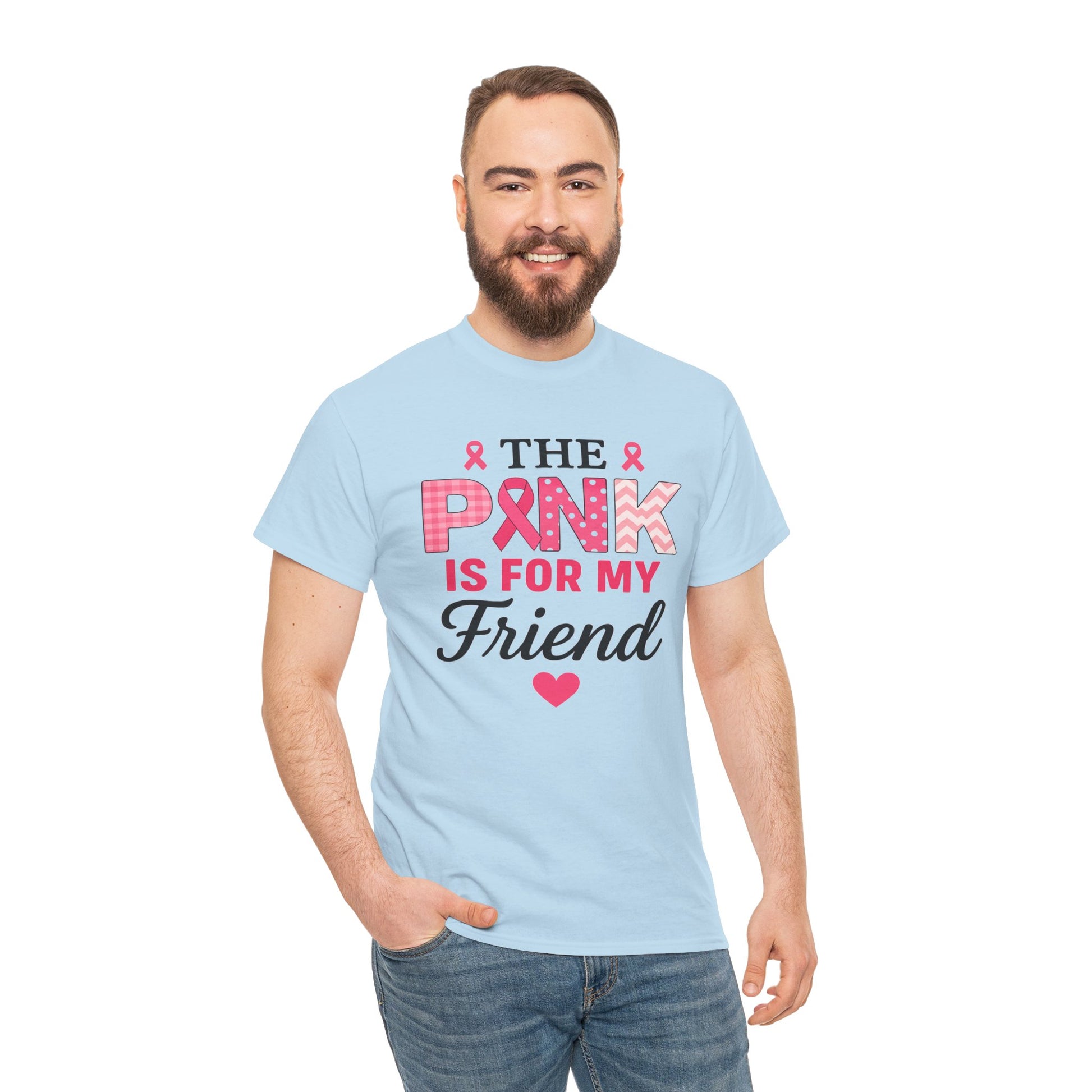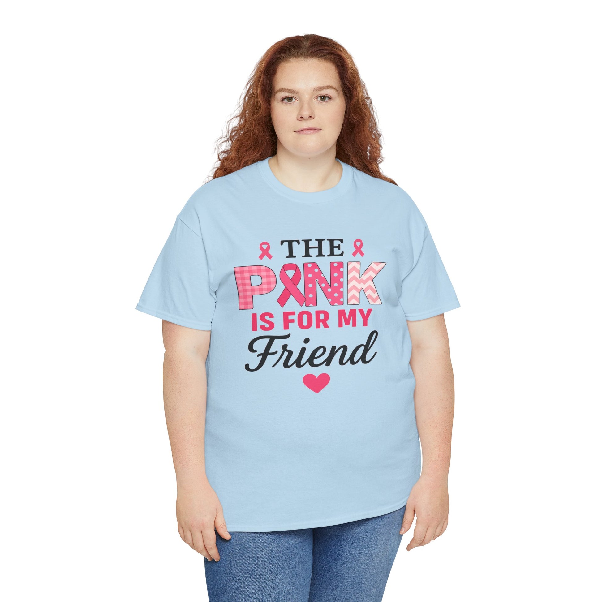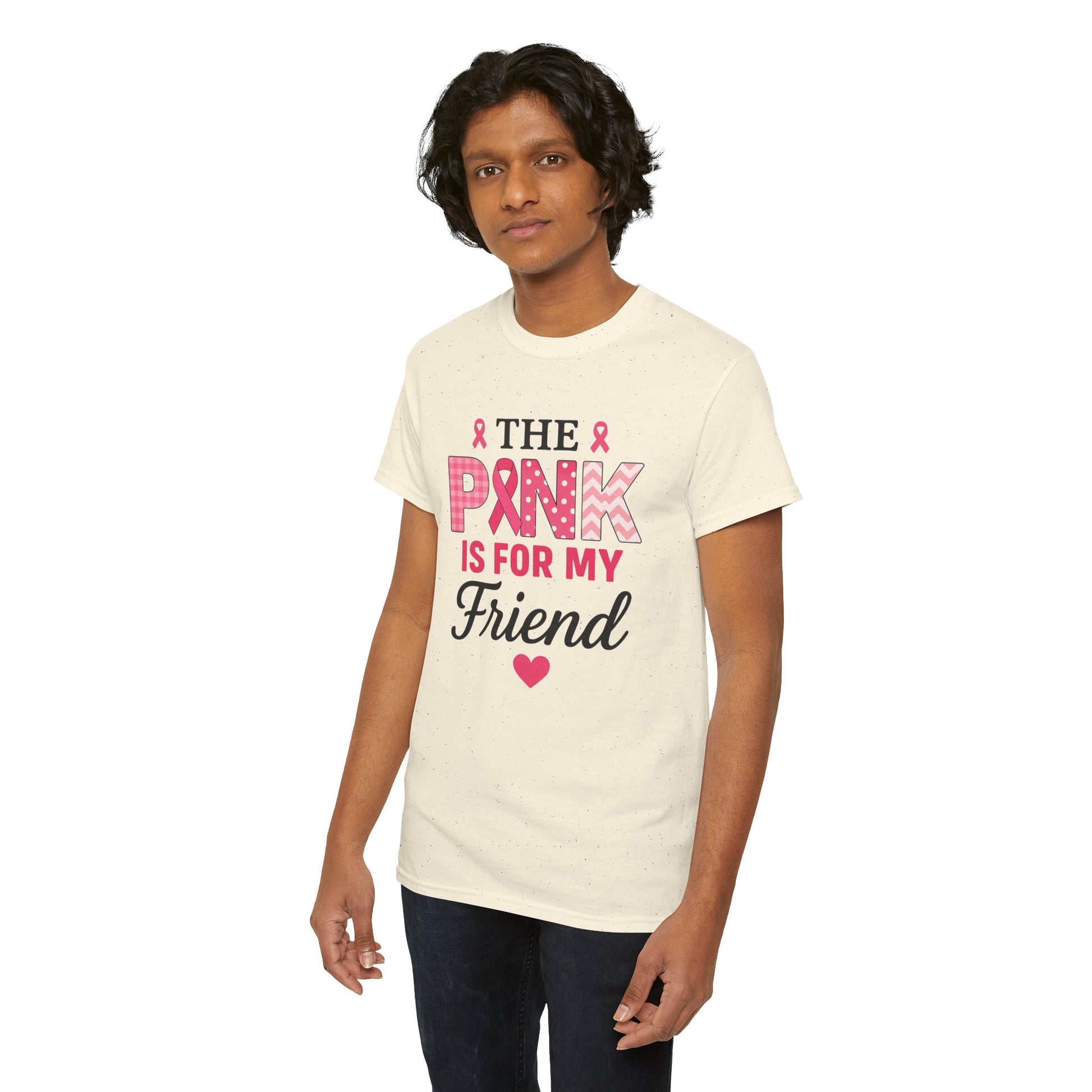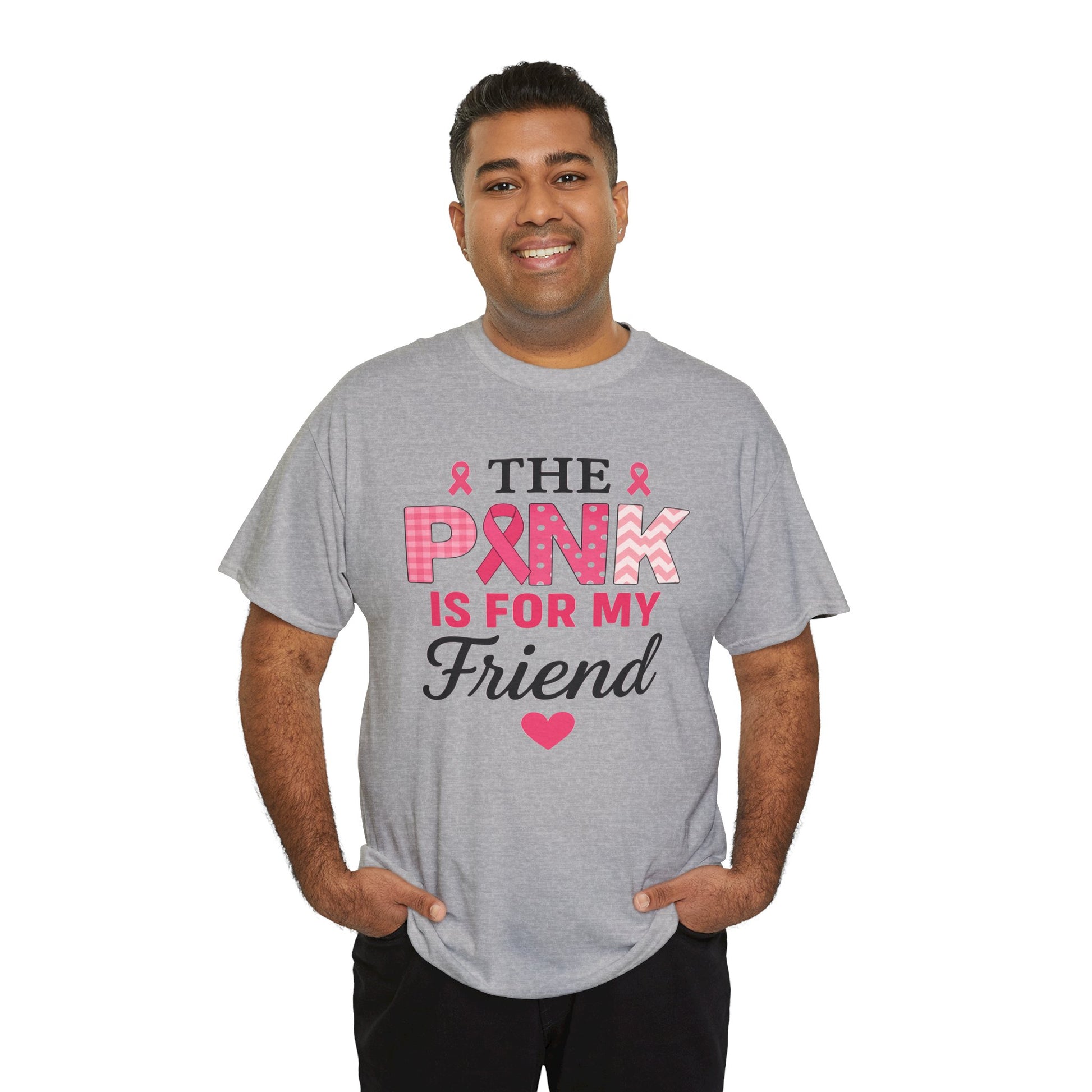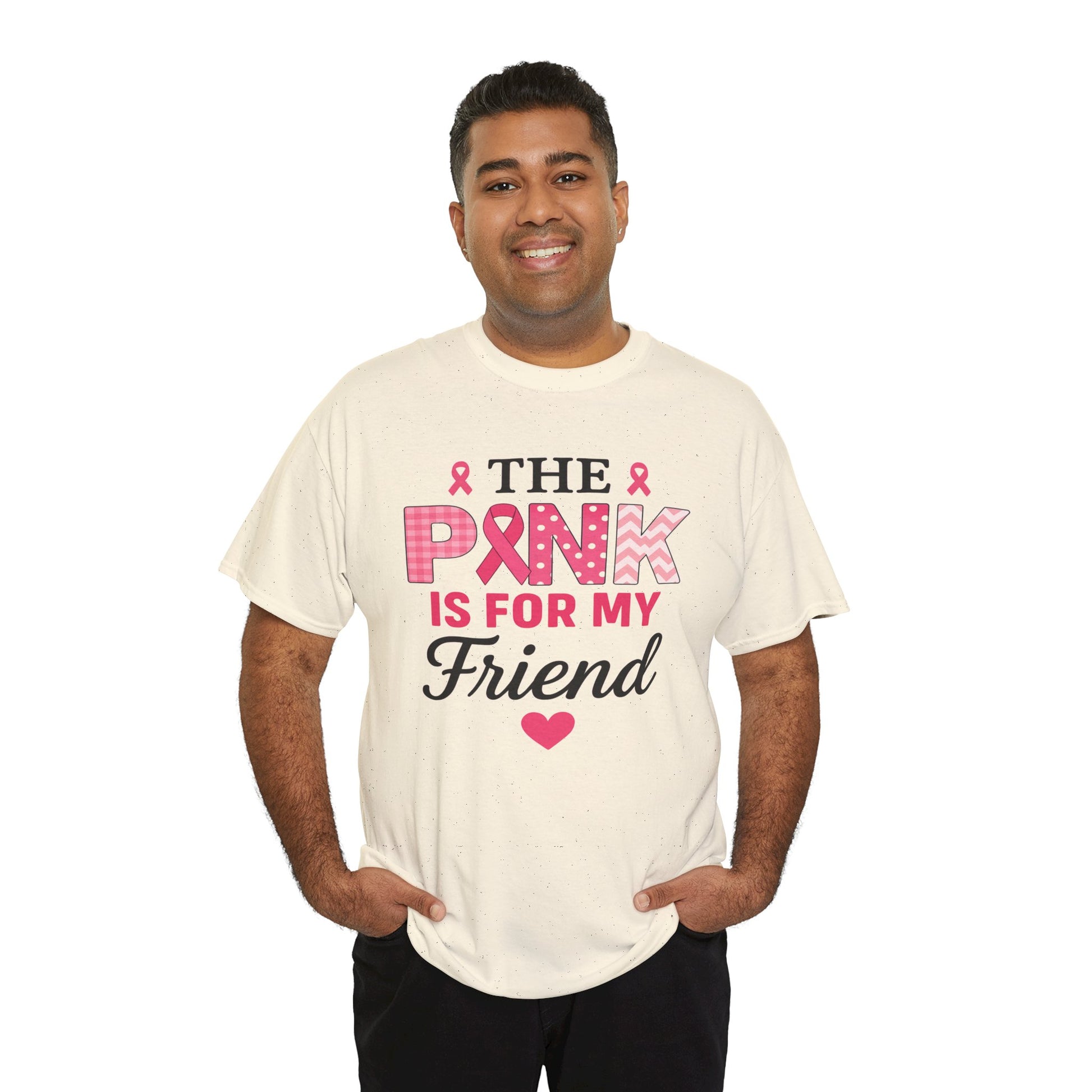 Show your support with this heartfelt tee! Featuring a design that uses the color pink to honor loved ones, this shirt proudly declares "THE PINK IS FOR MY FRIEND" in a stylish and supportive design. This unisex tee is perfect for raising awareness, showing solidarity, and offering comfort to those affected by breast cancer. A beautiful gift to express love and hope.