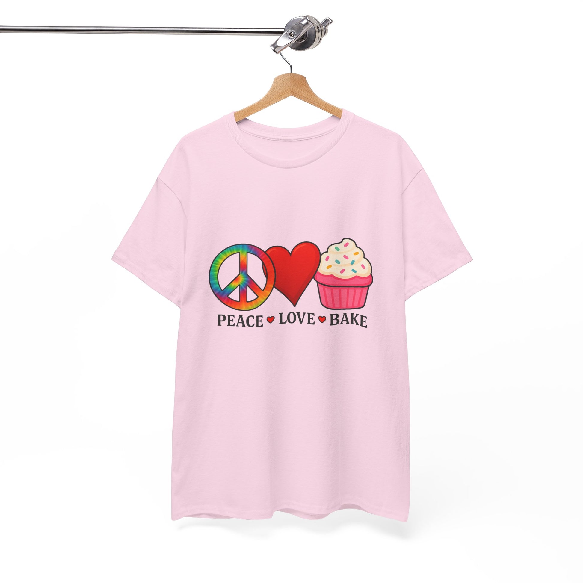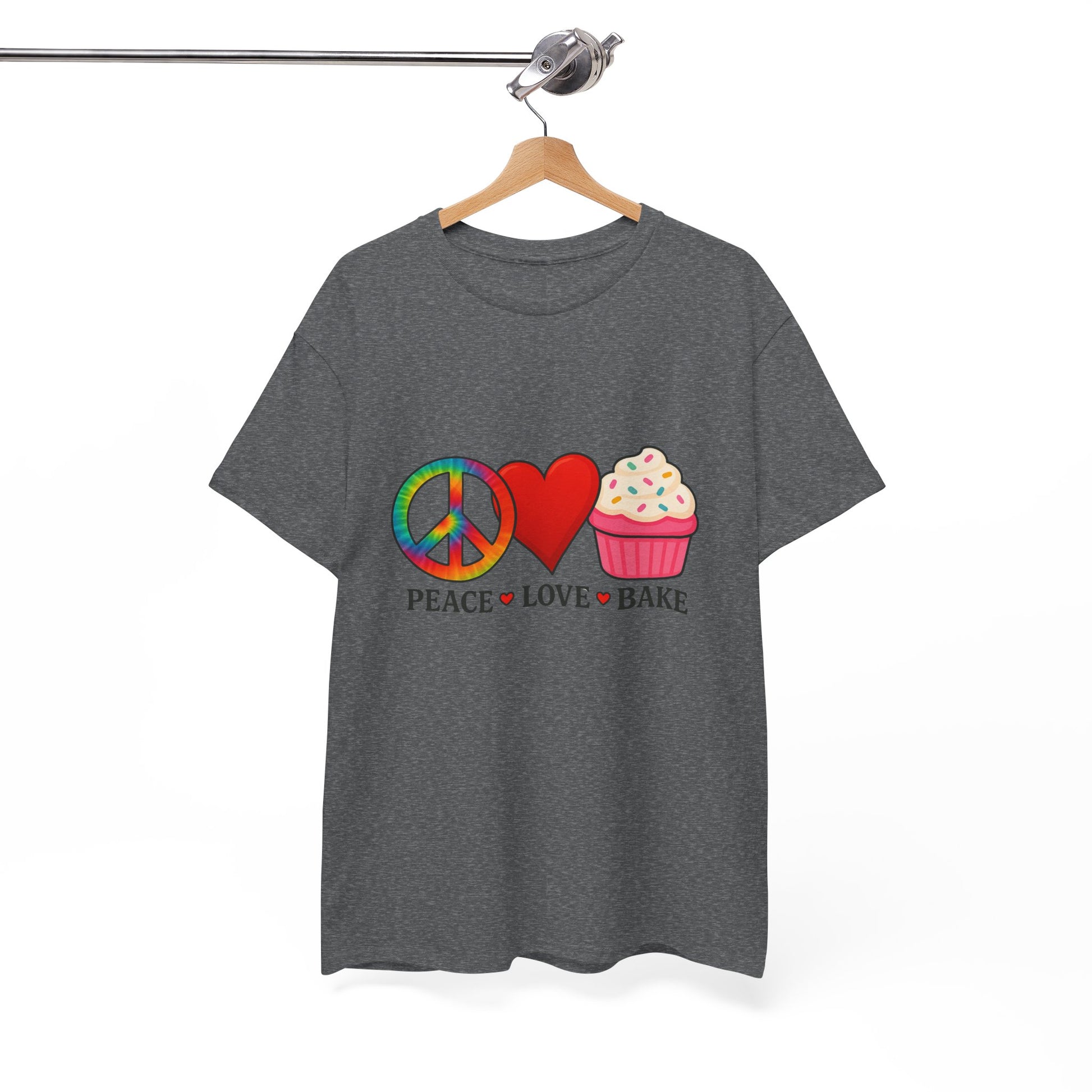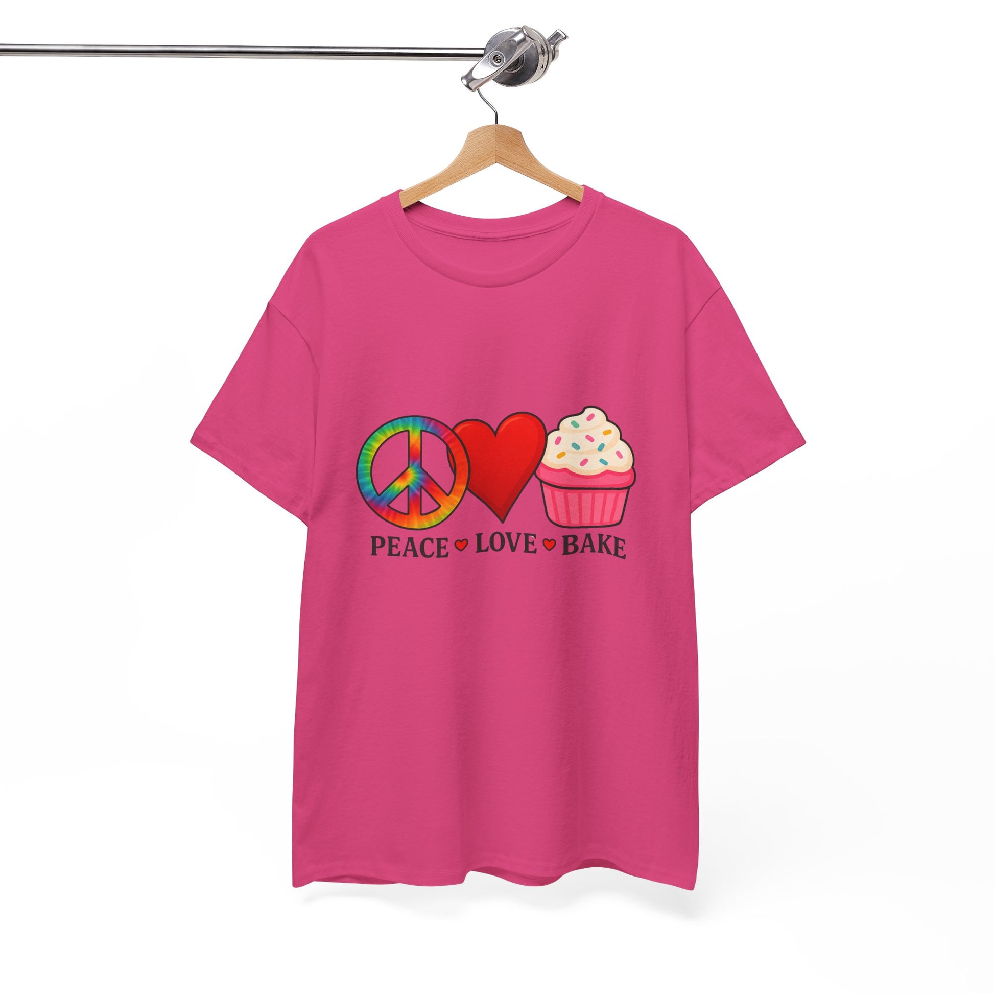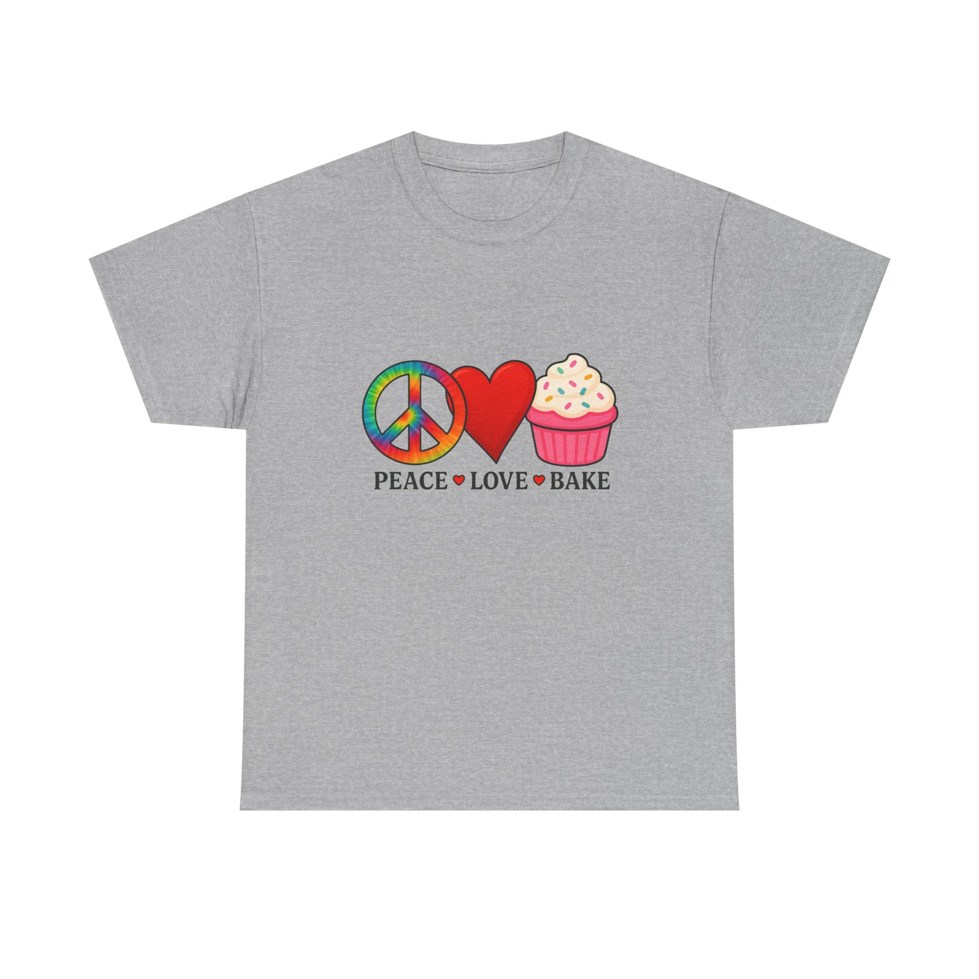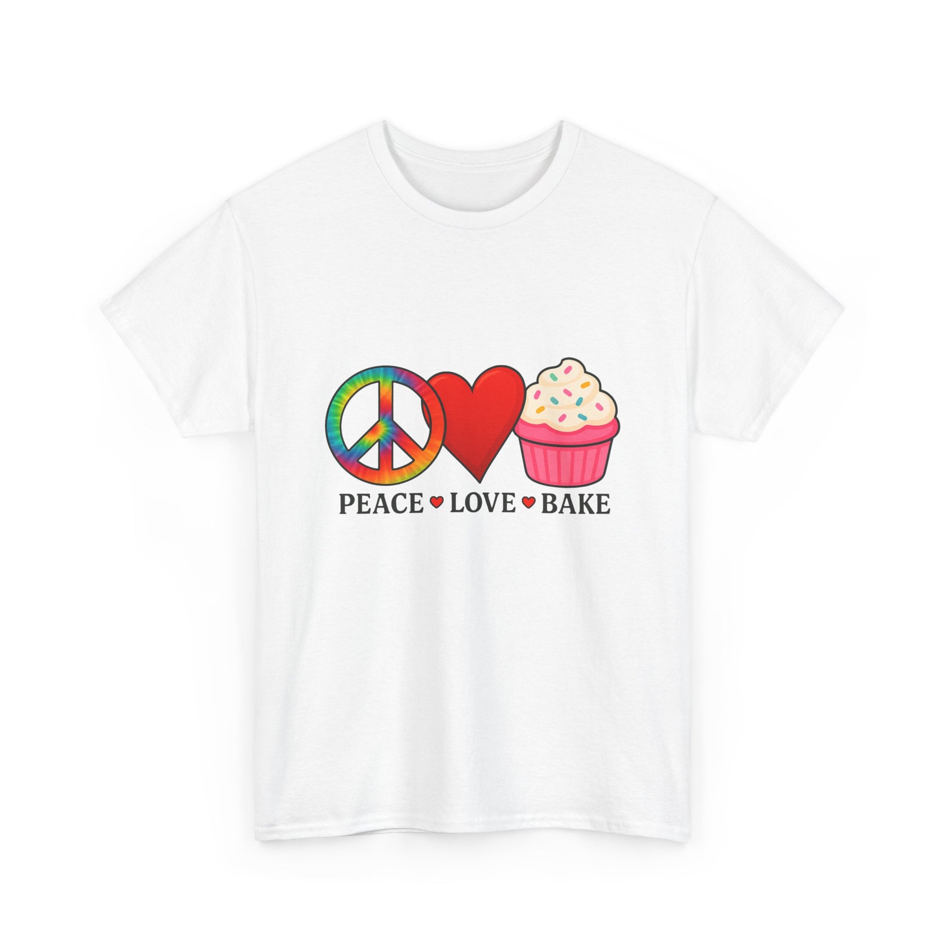 This tie-dye T-shirt features a peace sign, a red heart, and a cupcake, celebrating love. It offers a comfy, relaxed wear with a classic fit and crew neckline that blends into any casual or semi-formal occasion. The medium fabric made of 100% cotton ensures year-round comfort and sustainability. Ideal for adults, this T-shirt is perfect for spreading love and positivity, making it a great addition to your wardrobe for everyday wear or special occasions.
