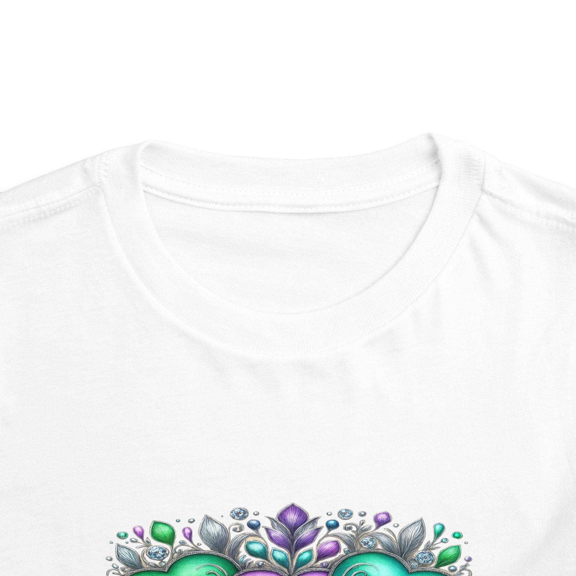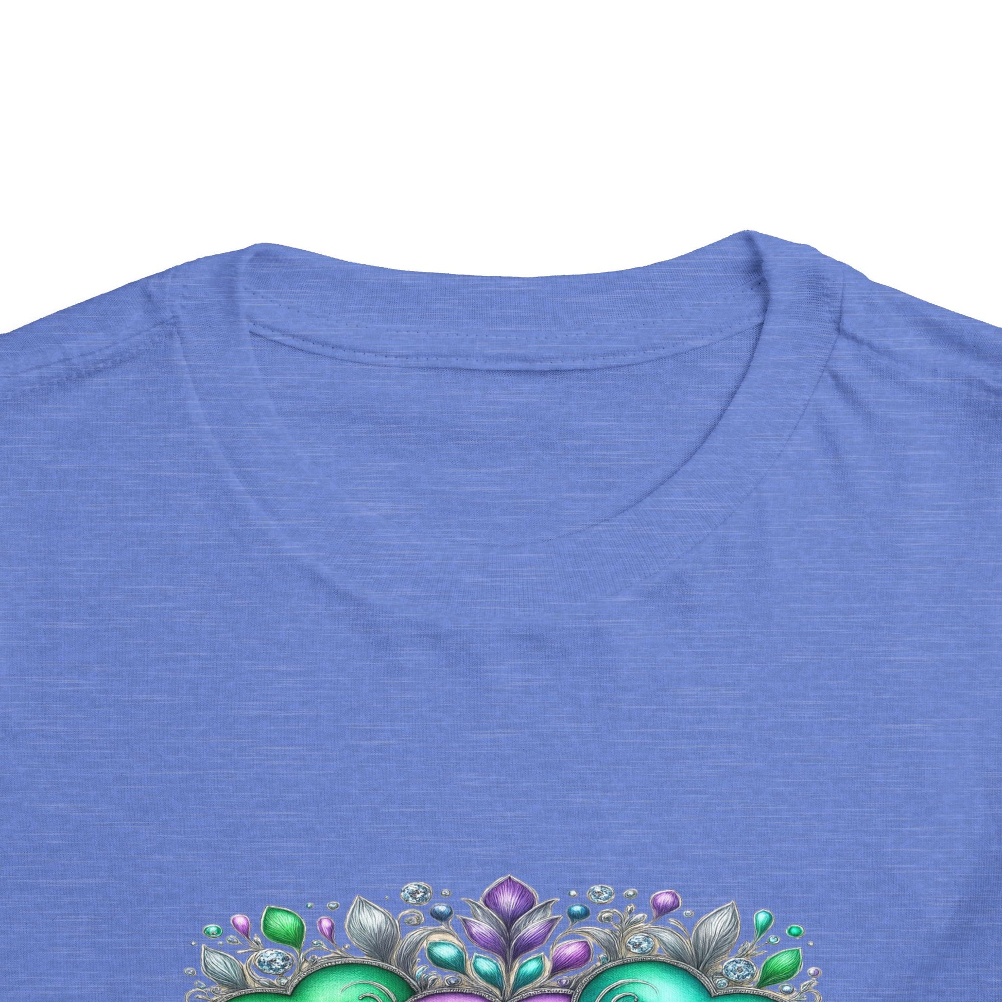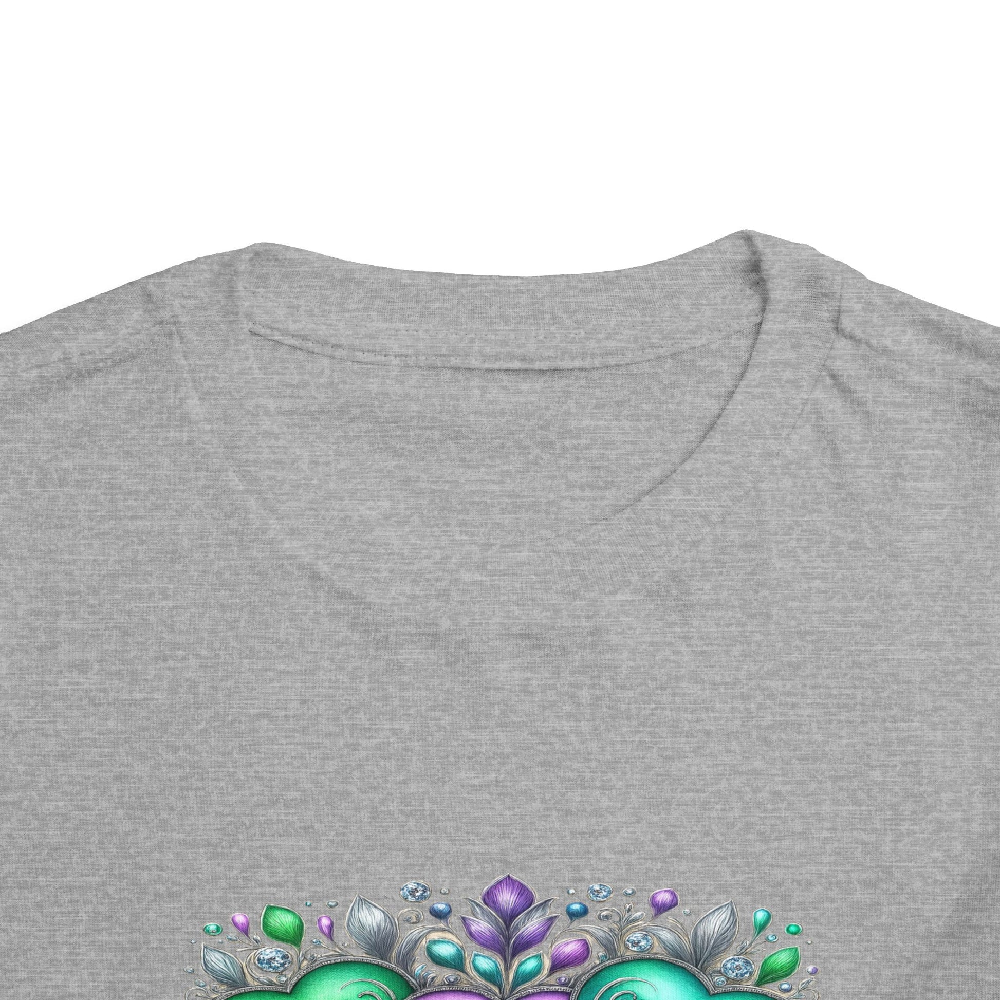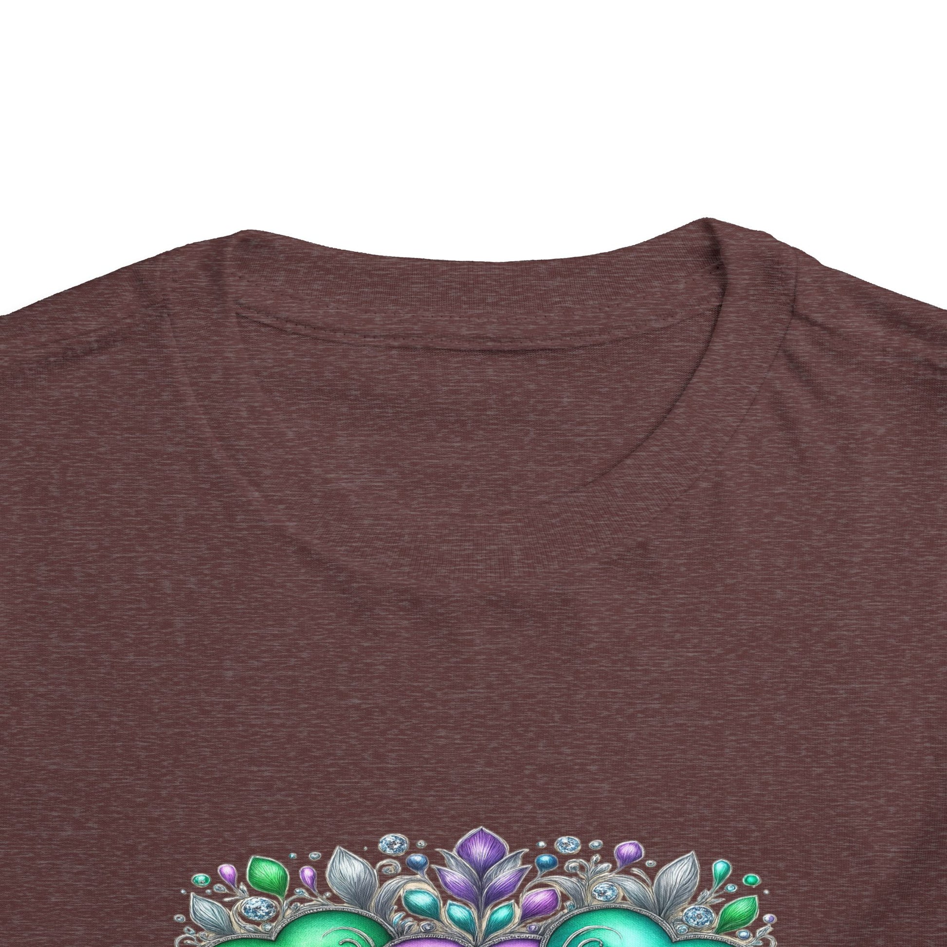 An adorable toddler tee featuring a heartwarming "Live Laugh Love" design with festive floral and gem elements. Perfect for little ones to spread positivity and joy during family gatherings, birthdays, and holidays.