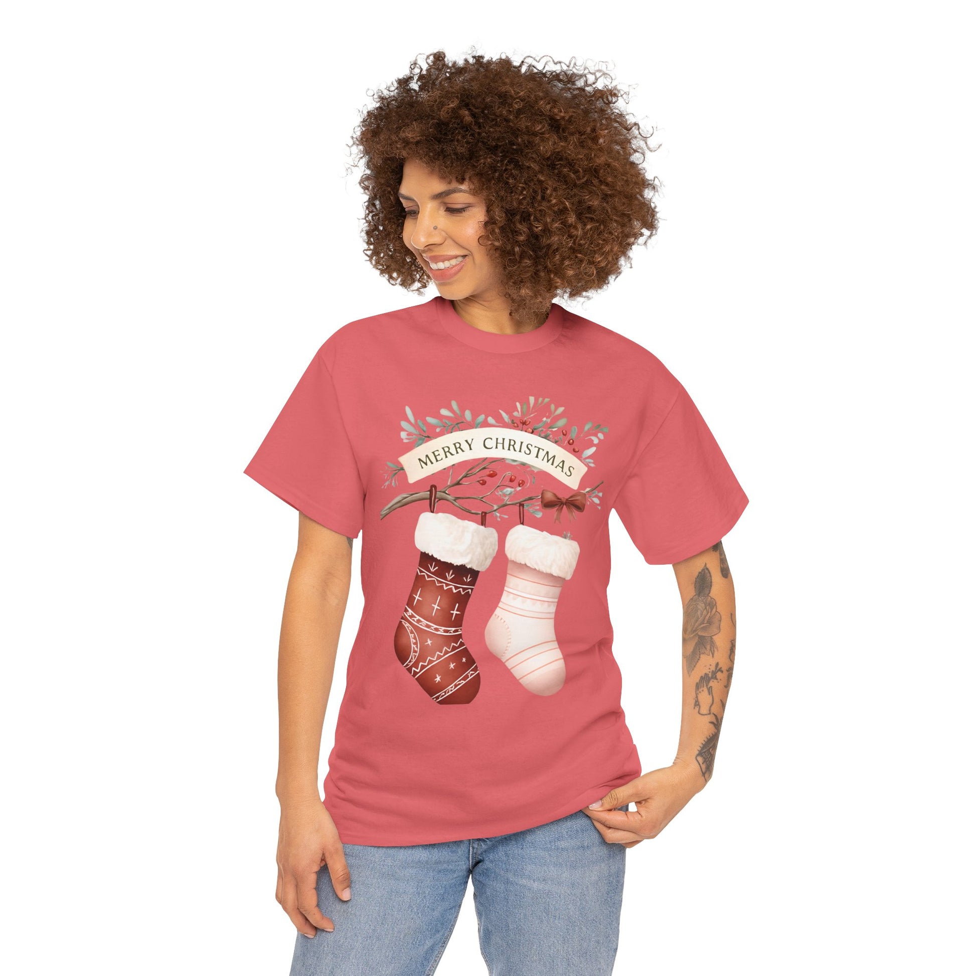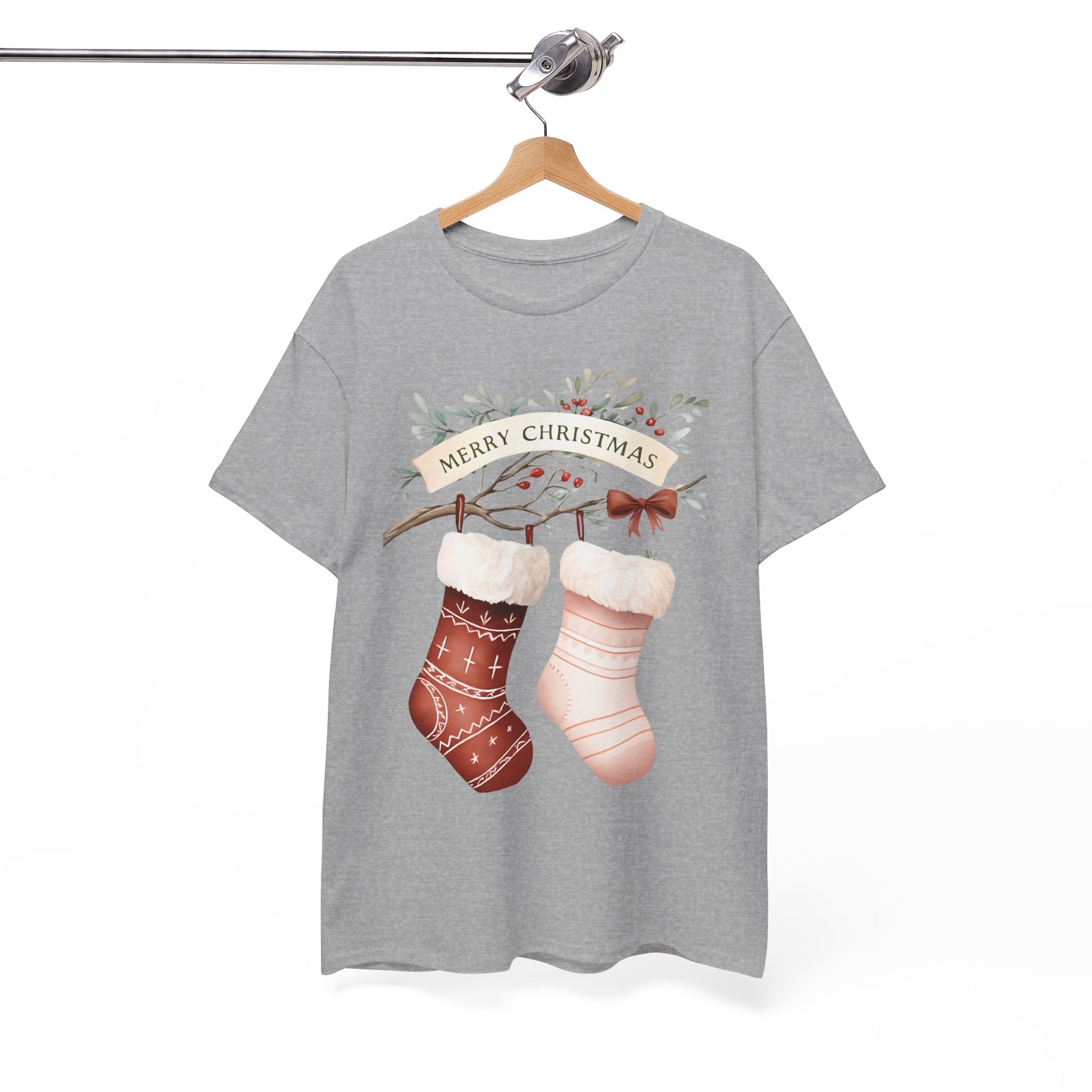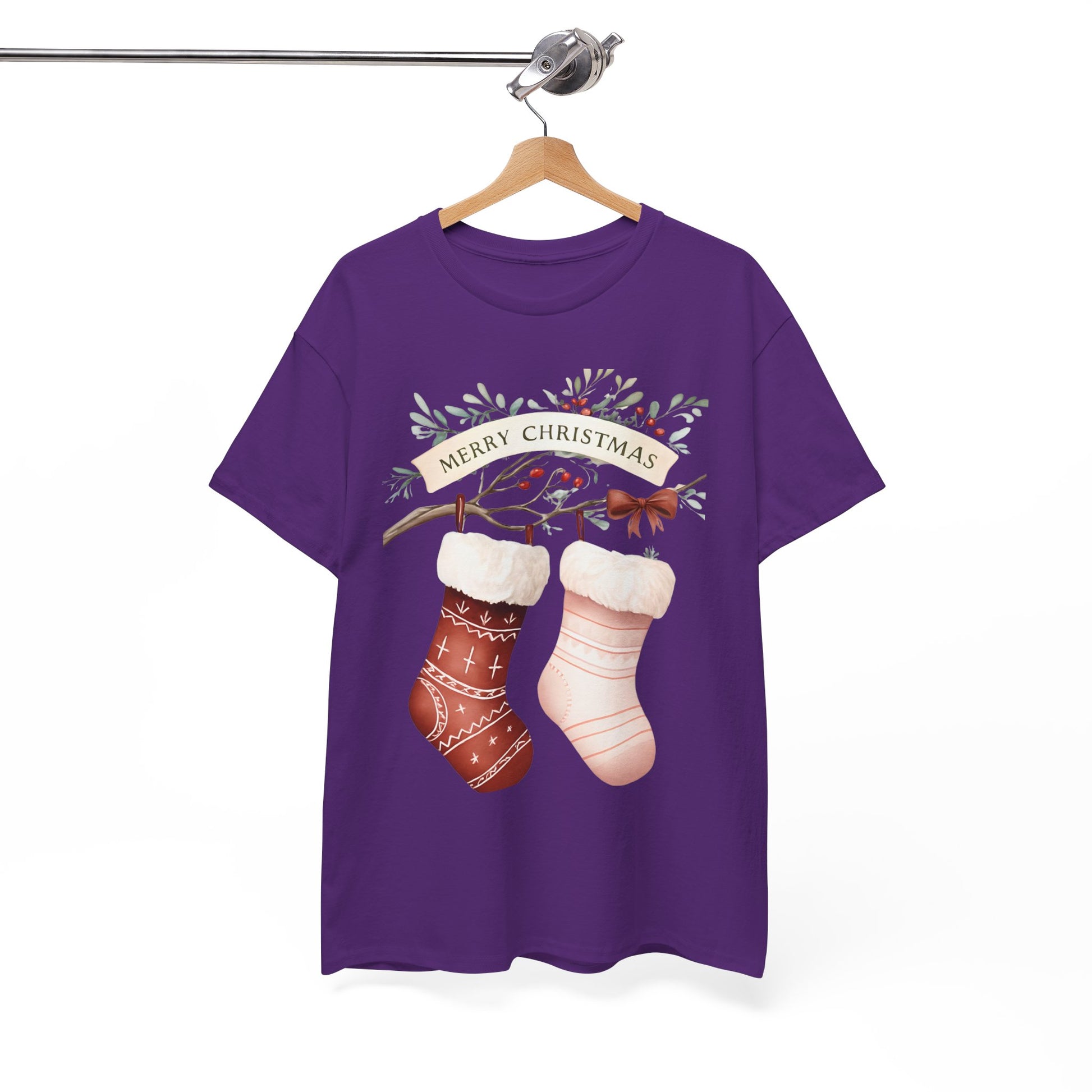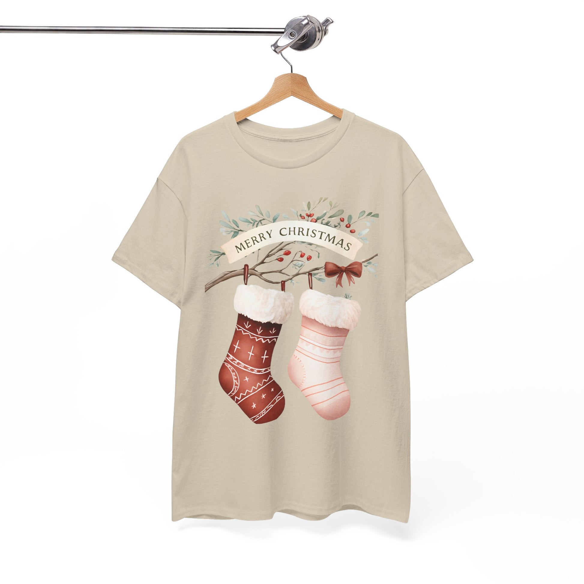 Embrace the spirit of hope and love this Christmas season with our unique watercolor-style tee. Featuring a festive branch adorned with stockings and a 'Merry Christmas' banner, this design radiates warmth and holiday cheer. Perfect for showing support and raising awareness, this soft and comfortable unisex shirt makes a meaningful gift. The delicate watercolor aesthetic and empowering message create a truly special piece.