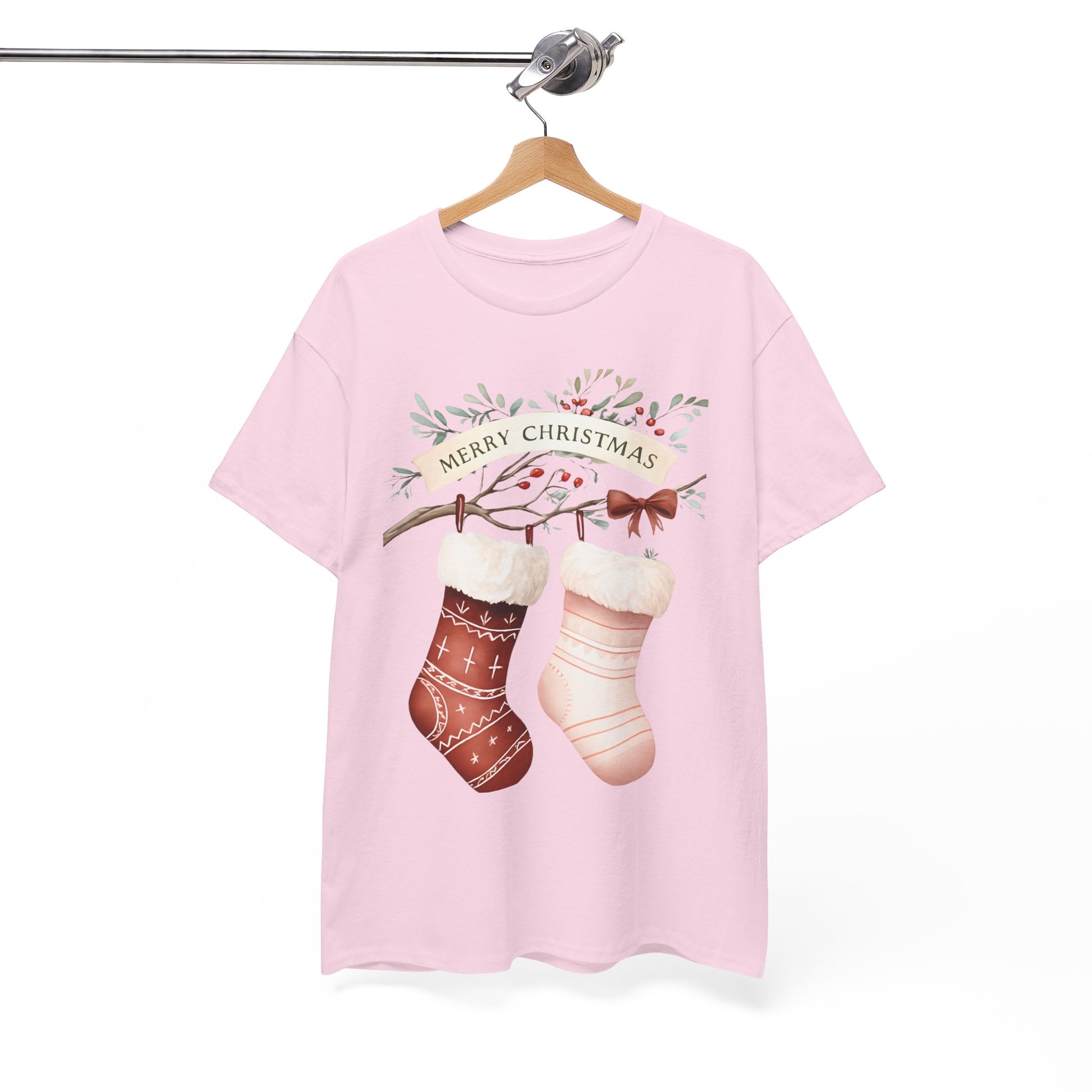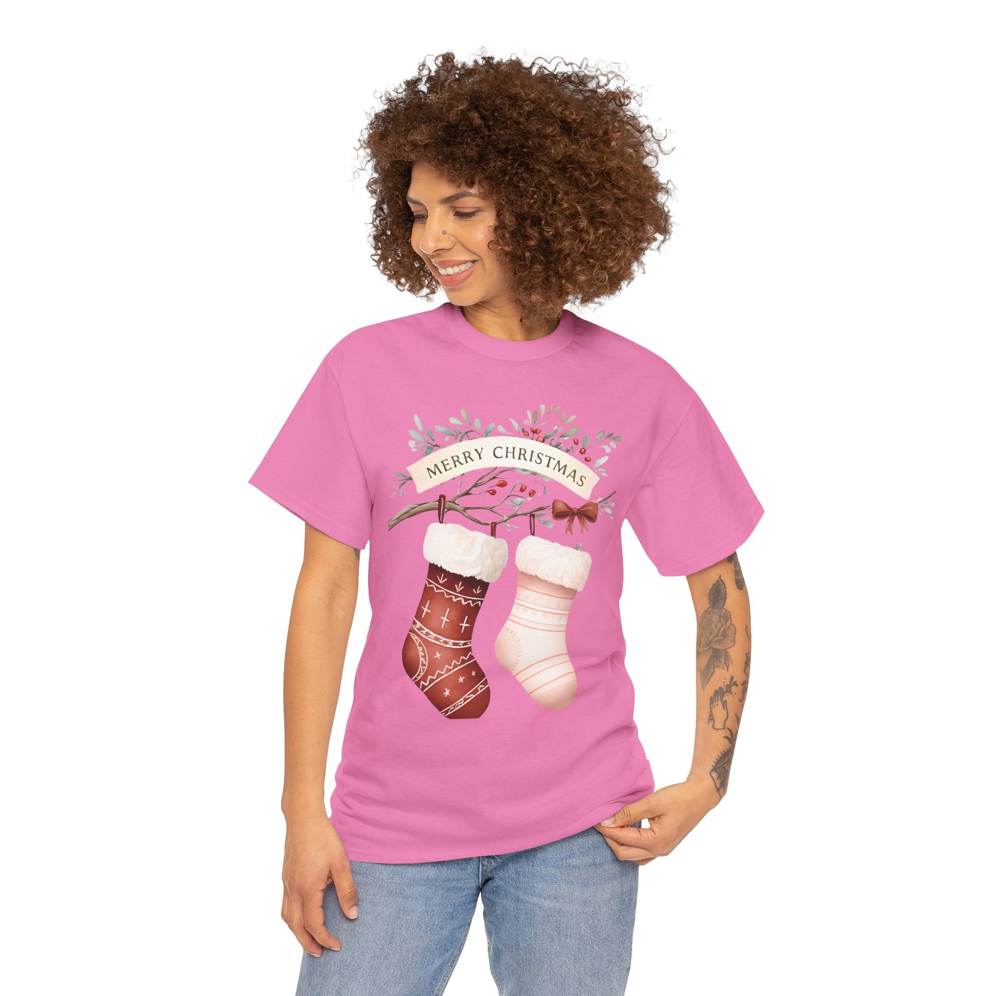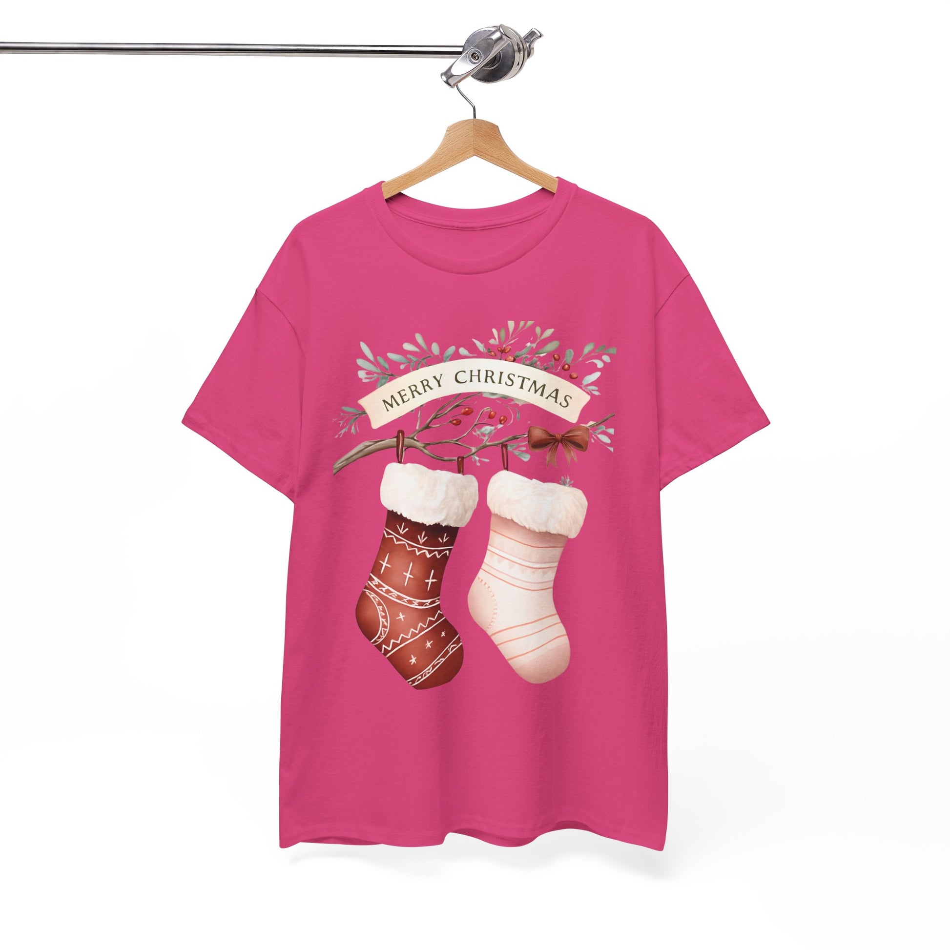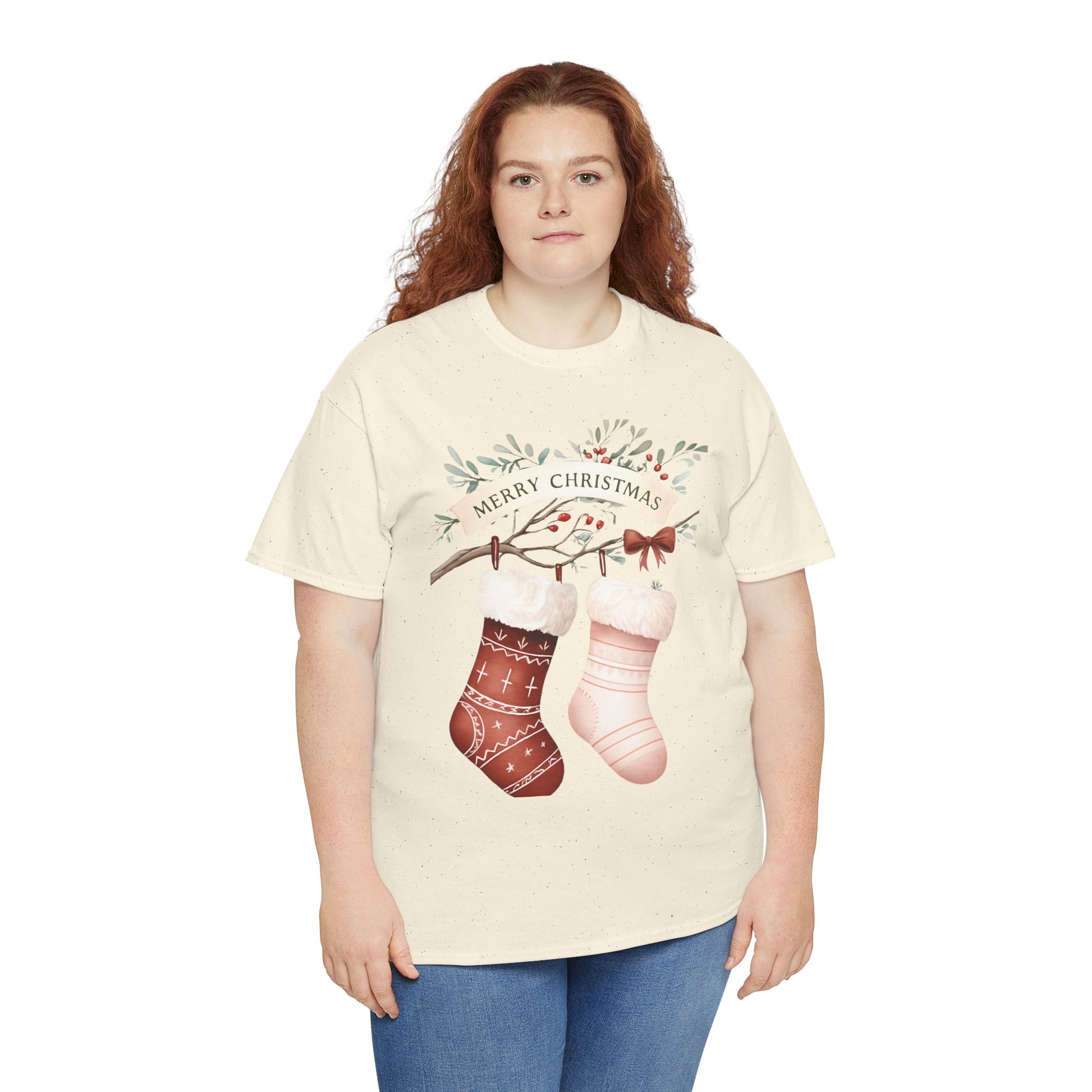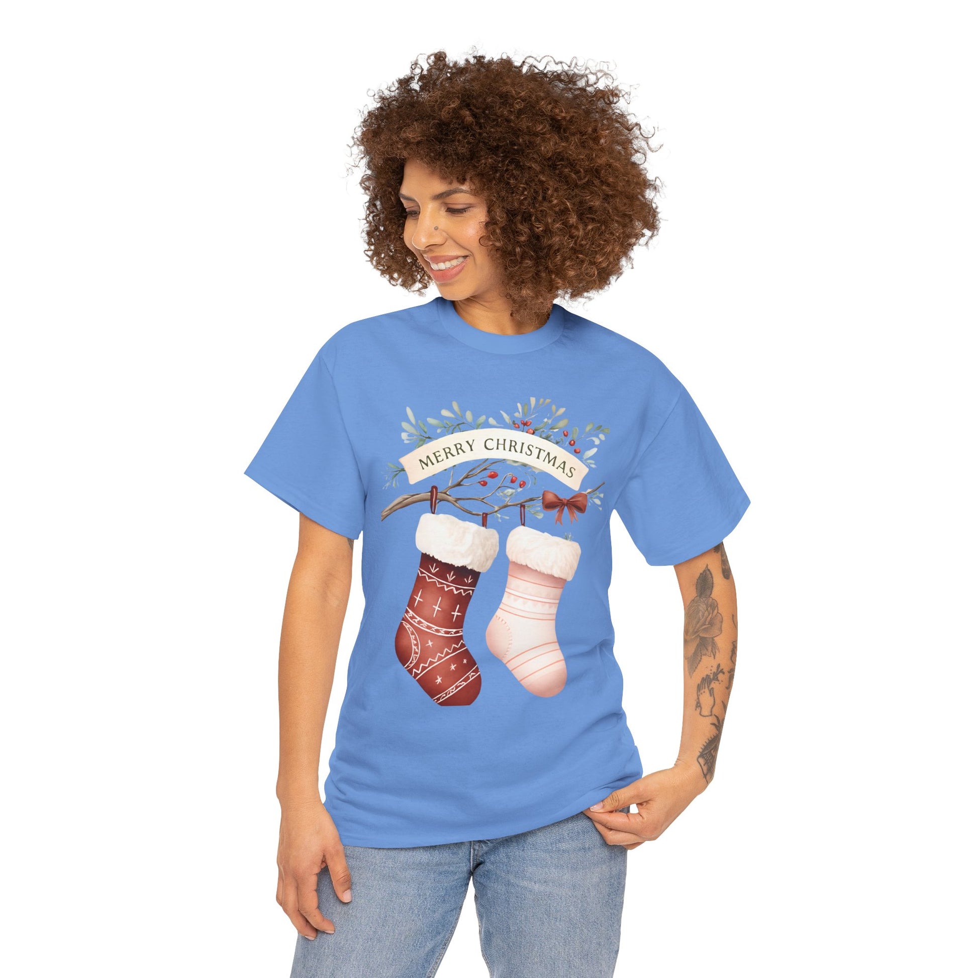 Embrace the spirit of hope and love this Christmas season with our unique watercolor-style tee. Featuring a festive branch adorned with stockings and a 'Merry Christmas' banner, this design radiates warmth and holiday cheer. Perfect for showing support and raising awareness, this soft and comfortable unisex shirt makes a meaningful gift. The delicate watercolor aesthetic and empowering message create a truly special piece.