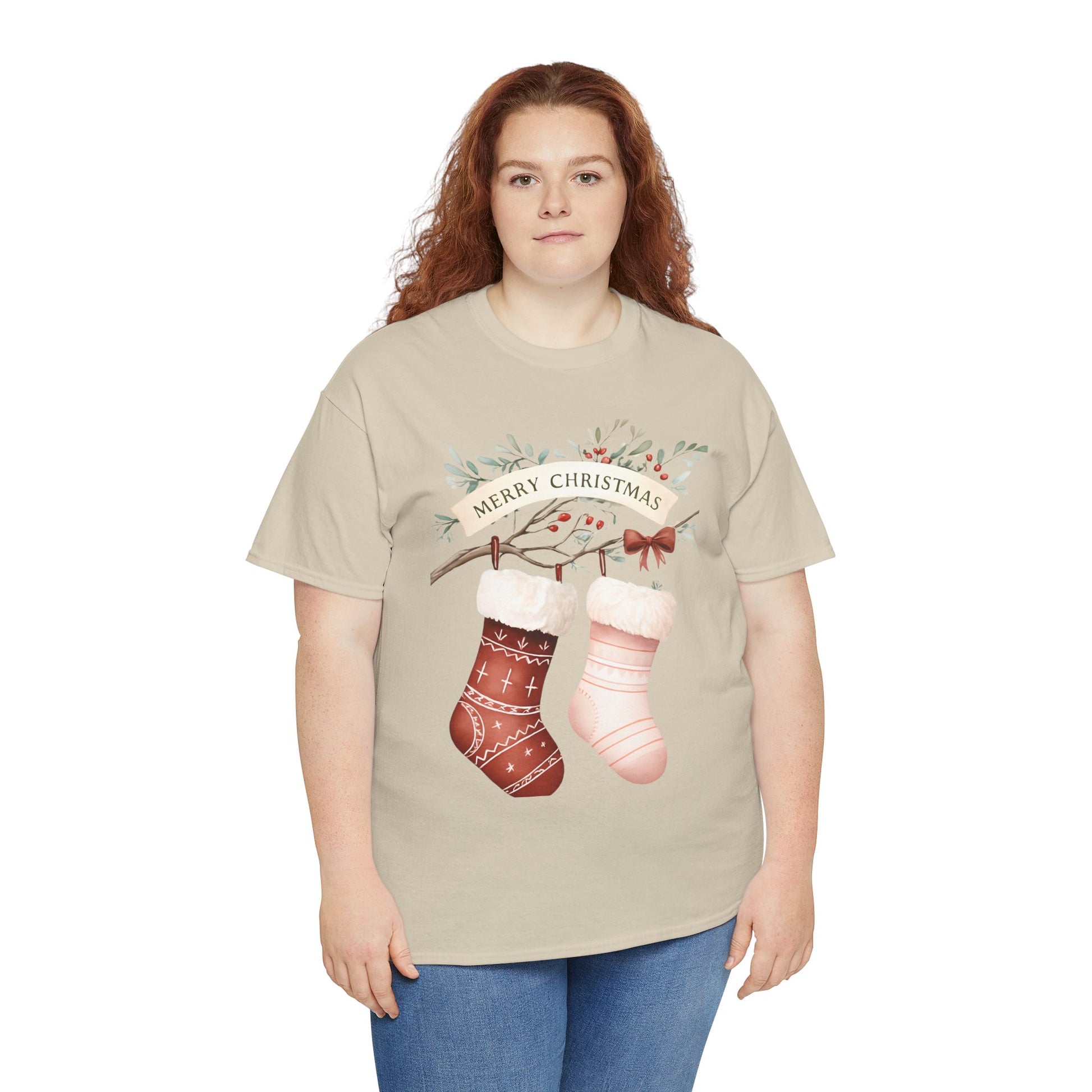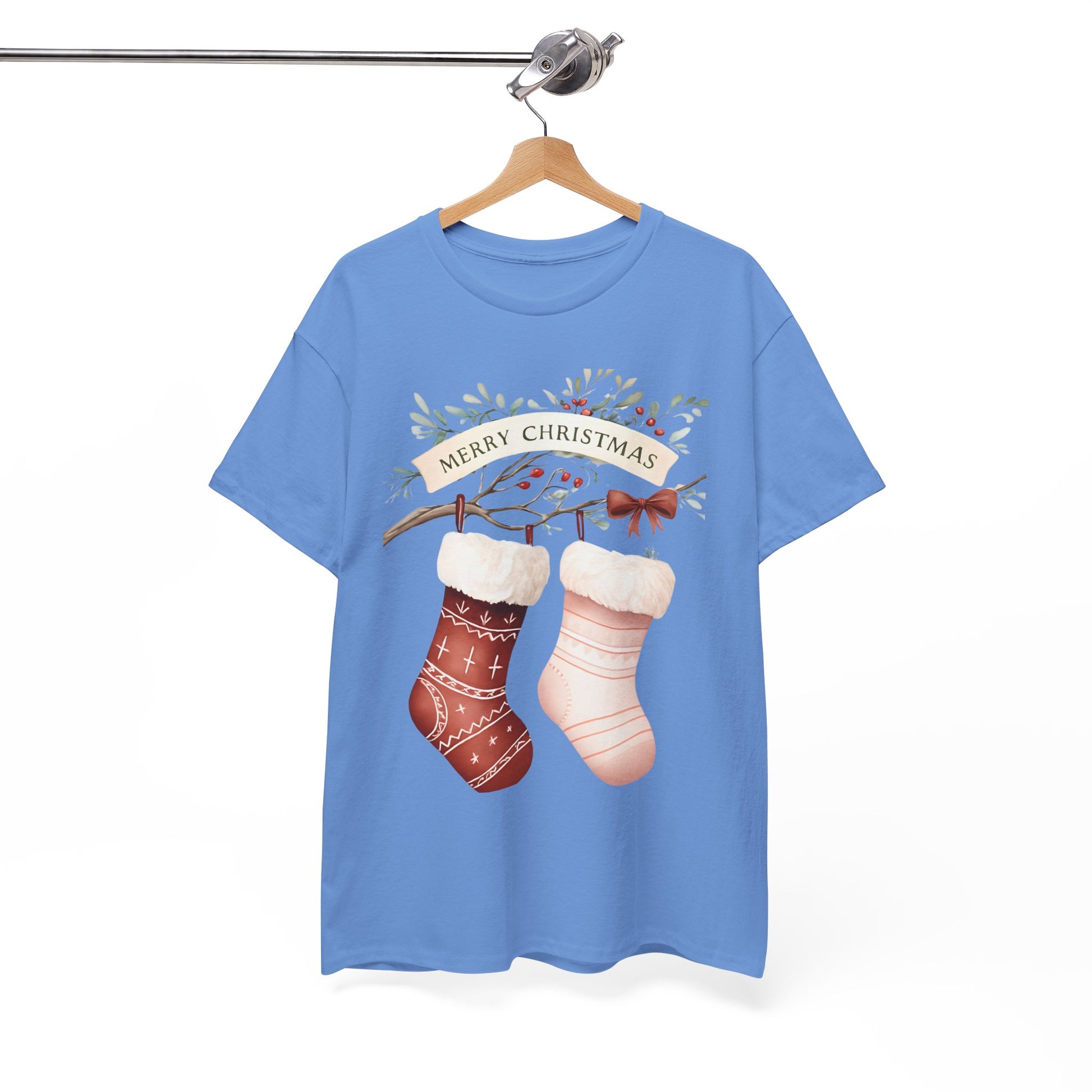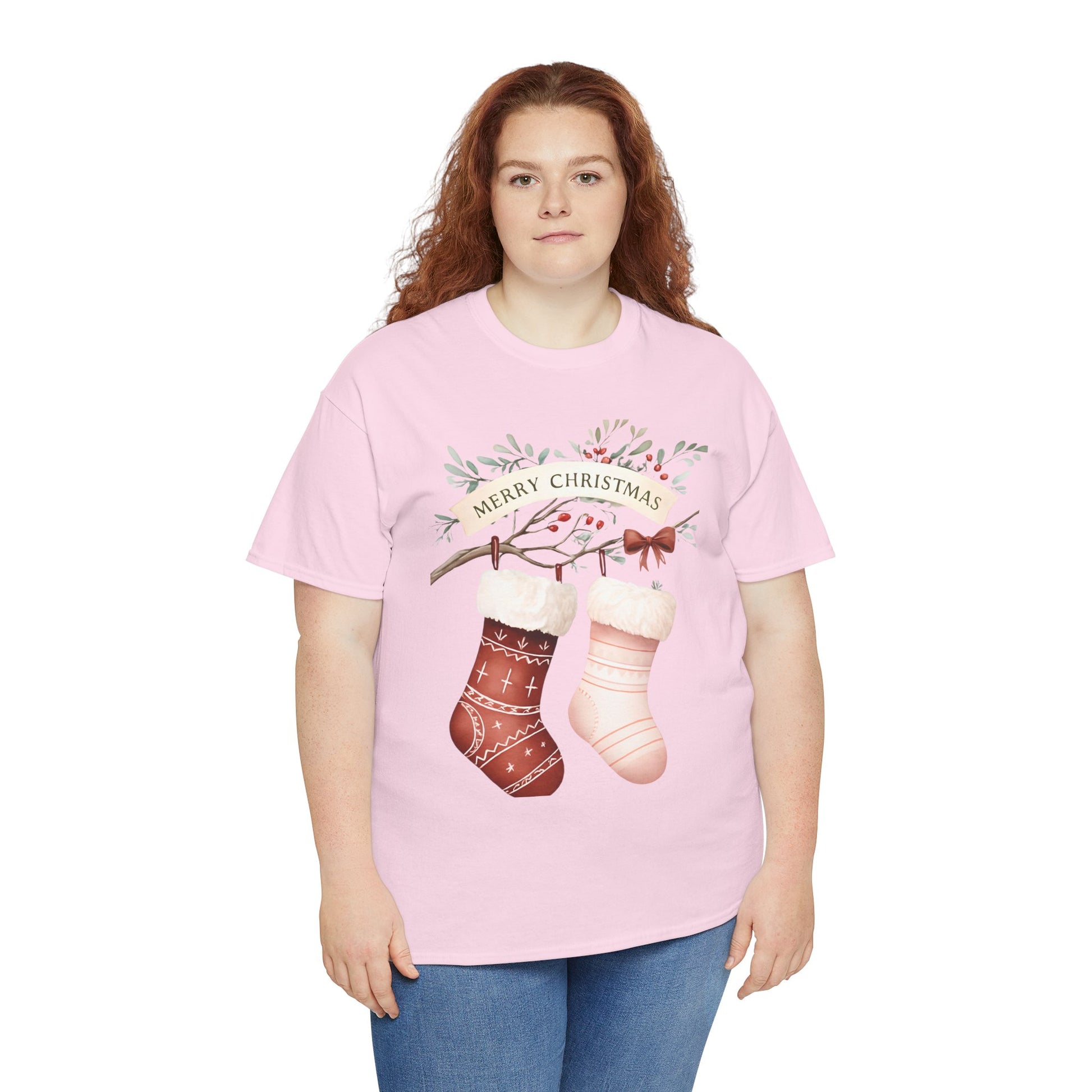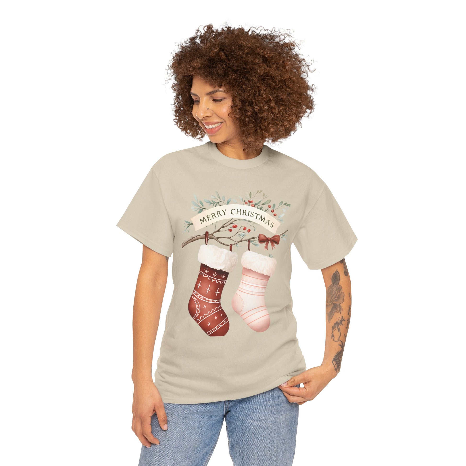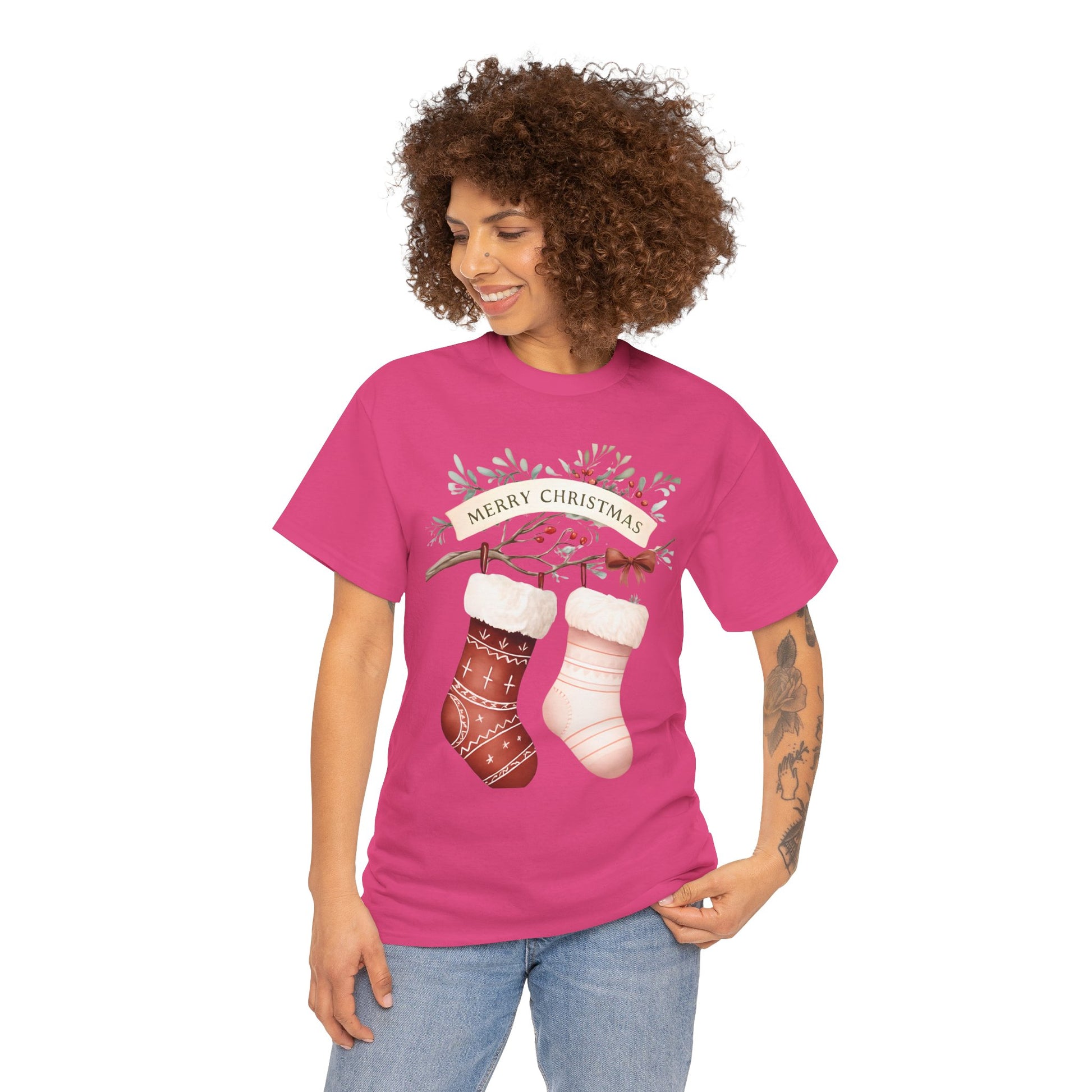 Embrace the spirit of hope and love this Christmas season with our unique watercolor-style tee. Featuring a festive branch adorned with stockings and a 'Merry Christmas' banner, this design radiates warmth and holiday cheer. Perfect for showing support and raising awareness, this soft and comfortable unisex shirt makes a meaningful gift. The delicate watercolor aesthetic and empowering message create a truly special piece.